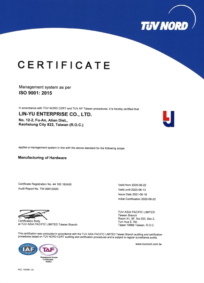 お客様のおかげで、会社の成長を引き続き、現在は世界各地輸出になり、製品も建築および自動車用ファスナーに運用する。